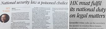 Today’s South China Morning Post gives readers a choice of views about what Hong Kong’s new administration should do regarding national security legislation, required under the infamous Article 23 of the Basic Law. On the one hand, Chief Executive Carrie Lam would be crazy to try to push such legislation through, given that the hyper-sensitive issue is bound to lead to the division and unrest she is desperate to avoid. On the other hand, the government must introduce laws against treason, sedition, subversion and secession soon, if only to ensure Beijing doesn’t impose its own harsh versions.