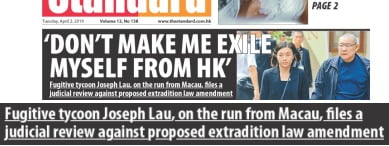 …owing to widespread grief at the prospect of oh-so-classy property tycoon Joseph Lau departing Hong Kong should the Mainland (and Macau, as in you-have-a-five-year-prison-sentence-awaiting-you-in) extradition arrangement go through.