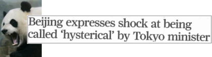 In sum, the book is of curiosity rather than academic value (the Japanese like it, apparently). It would be numbing to read straight through. But for the starry-eyed or nervous who see China’s rise to international might as a given, it’s a good antidote to dip into. If nothing else, we now have a phrase for all that over-the-top indignant fury that brightens up our days so frequently.