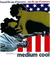 For the most intelligent and handsome person I know, viz myself: a classic film: Medium Cool, directed by Haskell Wexler. Undemanding plot in which a Chicago TV news cameraman confronts ethical issues, including some weak acting and a rather low budget. The big deal is that Wexler wrote the screenplay and started shooting in the lead-up to the Democratic National Convention in 1968. He wrote a riot (which was widely expected) into the script, and used the actual cop-driven street violence when it happened as a set. Thus the actors move from a work of fiction into a piece of documentary journalism while staying in character. To a Frank Zappa soundtrack. Click to see the opening credits, complete with (the main reason to click) instrumental Emotions by Love.