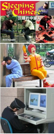There is, however, an alternative. It is Sleeping Chinese by Bernd Hagemann – a book full of photos of PRC citizens indulging in extreme napping. Sensitive types might feel slightly dubious about this work on the grounds that it could cause offence: it contains, after all, nothing but noble sons of the Yellow Emperor being caught looking ridiculous on camera by a German. The author maintains that he took up his hobby to provide a juxtaposition to the image of the Middle Kingdom as an awakening, and even threatening, mighty superpower.