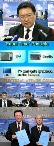 First, the ‘equal time’ guidelines are a hodgepodge of well-intentioned, meaningless blather that probably require a bit of effort to seriously infringe. Second, the penalties for breaking the guidelines are equally vacuous – unless you quake in your boots at the thought of the EAC making a reprimand or censure in a public statement (10.21) about you. Third, Basic Law Article 27 says: “Hong Kong residents shall have freedom of speech, of the press and of publication…” As we all know, the meaning of Basic Law articles may be reversed, inverted, turned inside-out or mangled to shreds by the Standing Committee of the National People’s Congress, but so far this one still stands. Plus there’s the usual UN human rights declarations.