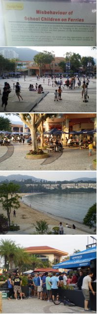 The scene is one of the ferry piers in Central. It is somehow noticeably less shabby than the rest of these mostly indistinguishable facilities. The plastic seats seem a bit classier, the floor a little less dusty. A shiny Perspex case on the wall is stuffed with glossy brochures and leaflets from the real estate agents, pet groomers, tutors, masseurs and other entrepreneurs doing business at the other end of the route, including one ‘Adequate Health Care’. It is clear that you are about to enter a land of dog-owning, tanning enthusiasts who spend a lot on their nails and kids. A noticeboard contains announcements in English only. The most prominent warns evil, undisciplined school children with too little homework to do to behave themselves on the boat.