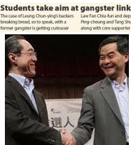 The mud, predictably, is thin and watery. And we can say the same about the attempts at negative campaigning mounted by CY’s rival Henry Tang’s camp. The Great West Kowloon Corruption Scandal looks decidedly feeble, as does the Fanny Law Gangster-Infested New Territories Dinner Outrage. However, the latter – while undeniably desperate – looks more professional: the naturally pro-Henry New Territories godfathers trick CY’s people into dining with bad elements, the media make a fuss, and next thing Henry is asking for police protection from triads and whining about how CY is undermining our core values. Before you know it, Hong Kong University students are spending funds protesting what the press are calling CY’s gangster link.