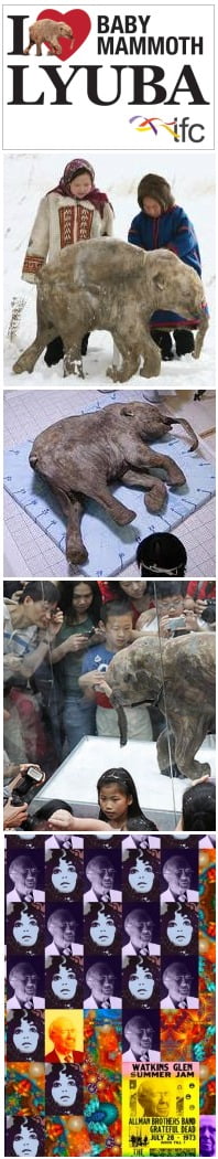‘I love plucky little Lyuba’ T-shirts and carry carrots and boxes of Meltykiss chocolates for the cheeky but adorable 42,000-year-old baby mammoth.