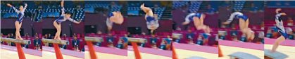 Except she’s not leaping off it, but on to it, complete with somersault-type interlude in mid-air. Can’t she find a way to use this impressive skill to benefit the community? Maybe the Fire Services Department could employ her to jump onto narrow tree branches to rescue cats. There must be something productive like that for her to do.