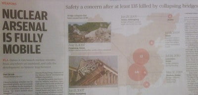 China can launch nukes from anywhere in the country (left)… but can’t build bridges (right).