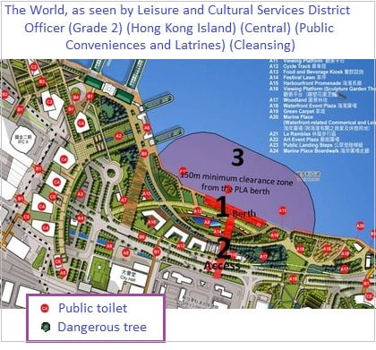 The problem with the toilet-cleaning avoidance theory is that there must be a Leisure and Cultural Services District Officer (Grade 2) (Hong Kong Island) (Central) (Public Conveniences and Latrines) (Cleansing) somewhere with a big map with lots of coloured pins stuck in it, eagerly licking his lips at the prospect of expanding his headcount, budget and overall empire thanks to additional responsibilities on the new waterfront. These people will kill to get more toilets to clean.