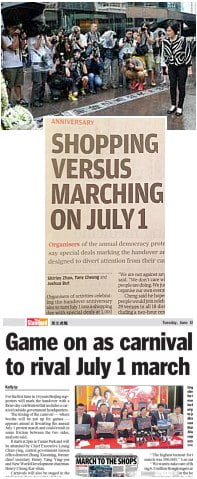 Don’t underestimate the effect of the three-hour discount retail carnival extravaganza shopping experience on the July 1 protesters. This is Hong Kong, after all, and a discount on a Milan Station bag will beat a principled stand any day of the week.