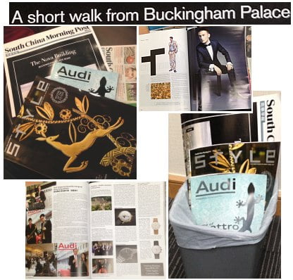 On the subject of waste, today’s South China Morning Post came with a) a glossy wrap-around pushing luxury apartments in London; b) a 78-page glossy ‘Voice of avant-garde Asia’ called Style, containing pictures of grotesque people in outlandish clothes; and c) a 122-page glossy pile of drivel called Audi, containing pictures of ugly cars and even uglier people and (God, how original) tacky watches – all of which naturally gets heaved straight into the trash, as just about everyone involved in producing the stuff knew it would. I declare the weekend open with the thought that it’s not only government that pours wealth down the toilet.