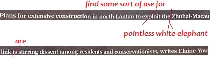 Just as I am about to declare the weekend open, a copy of LaDA Newsletter lands on my desk. That’s the Lantau Development Alliance, a private-sector group with much the same membership as the (I think subsequently formed) government-appointed advisory body. Their motto is that Lantau ‘has tremendous development potential’, which means ‘lots of places not covered with concrete and malls’. They have been on study tours of such grubby bits of the Pearl River Delta as Hengqin Island. They proclaim a desire to ‘establish career mobility pathways for youth from grassroots families’, where ‘career mobility’ means ‘minimum-wage’ and ‘pathways’ means ‘dish-washing jobs’. And they have recruited kids from Tuen Mun into an evil-sounding Youth Ambassador scheme to this end. They want to do something unspeakable to Sunny Bay – it’s hard to say what exactly, but you get the impression the place will need a new name afterwards.