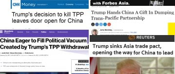 The decline and withdrawal of the US – as exemplified by the abandonment of the Trans-Pacific Partnership free-trade pact – creates a space that China can and will occupy. The South China Morning Post is a predictable proponent of this indisputable concept/meme/dream/fact…