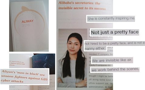 The empire’s new Hong Kong outpost, the South China Morning Post, doesn’t appear (no doubt it will be in the next edition). But Chairman Ma’s Little White Book does pay lengthy tribute to the Alibaba conglomerate’s secretaries. They are ‘invisible like air’, ‘working behind the scenes’ and ‘not hired to be a pretty face, and not a nanny either’…
