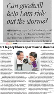 A South China Morning Post op-ed column asks whether Hong Kong’s new Chief Executive Carrie Lam will see her honeymoon continue. She currently has ‘the wind in her sails’, we are told, because everyone welcomes her plan to boost education spending, and some opposition members stood up when she entered the Legislative Council chamber the other day.