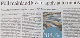 I rarely go to China so the train, like the bridge, is of little interest to me. However just the wipe that smug look off Carrie’s face I would like to see her get her first (of many) real good kicking over locating mainland immigration facilities at the shiny new train station. What’s not to like about having mainland police enforcing mainland law in a part of West Kowloon ?