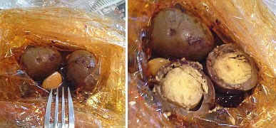 As a humanitarian gesture in these dark times – a preparation for Armageddon in the form of pickled eggs. Method: hard-boil, cool and peel the things, place them in a plastic bag, then massage them seductively with garlic, soy sauce, salt, vinegar, whatever, etc, but especially and mostly chili sauce (eg this), then leave in the fridge for a week…