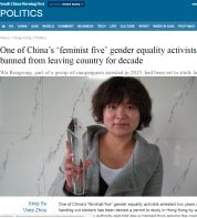 China’s big and tough, self-confident authorities ban Wu Rongrong, one of the high-profile ‘five feminists’, from leaving the country to study overseas (in supposedly-part-of-the-motherland Hong Kong, as it happens). On the Communist Party’s vindictiveness scale, the (10-year) ban is pretty soft. The Leninist system imprisoned and effectively killed Liu Xiaobo for writing essays, and it has just forced a public confession out of Taiwanese rights activist Lee Ming-che – and tormented his wife into the bargain.