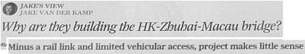 The ‘wretched’ HK-Macau-Zhuhai Bridge is due to open next year, perhaps.