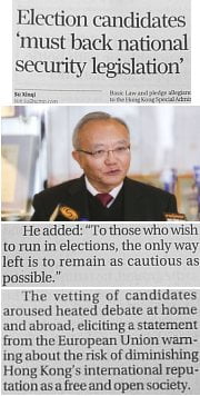 An even more draconian approach is a decision by the (‘highest organ of state power’) NPCSC, which is essentially an imperial edict overriding or bypassing even the Basic Law. Beijing recently resorted to this method to justify the transfer of high-speed rail terminus facilities to Mainland jurisdiction, and could use it to impose other decisions on Hong Kong as ‘national policy’ – anything it feels like (subject to implementation by rubber-stamp-to-be local legislature, hence above-mentioned disqualifications, etc).