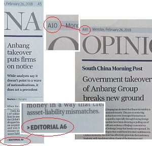 Yesterday, I happened across a rather egregious can’t-tell-one-portly-Ho-from-another typo in the South China Morning Post. And today, I find another – albeit of a more humdrum forgot-what-page-editorials-are-on nature…