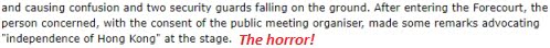 The key clause here is “with the consent of the public meeting organiser”. This has now given them the justification they need to ban CHRF from the democratic process and from future demos at Civic Square.