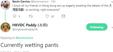 “Hi Carrie where do you come from,” I’m from the Greater Bay Area of Southern China,” Get over yourself you mean Hong Kong”