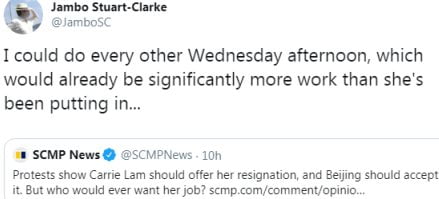On the subject of ‘neat, easy, and not-convincing’, we should also mention another recent development: the HK Police’s new-look cool-and-hip Twitter presence. If a PR company is involved, they are keeping it quiet. Out with the old clunky officialese, and in with trendy memes, jocular aren’t-kids-terrible stuff, and mawkish mock-heroics and self-pity. Plus of course, lots of bomb seizures.