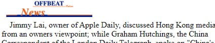 How things have changed. Would you believe there was a time when recently-and-frequently-arrested pro-democracy media boss Jimmy Lai served as a high-calibre speaker at a Hong Kong Police senior command course? (Scroll down to bottom story – just above the ‘copyright 1997’ thing.) The cops also invited Democrat James To and Amnesty International. What a difference the CCP makes.