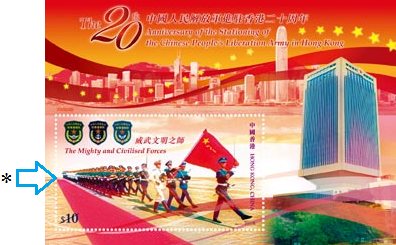 I declare the long weekend open by unveiling the Hong Kong Post Office’s contribution – stamps celebrating 20 years’ presence in Hong Kong of the PLA’s ‘Mighty and Civilized Forces’…