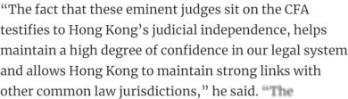 This is one of many areas where our local officials awkwardly try to cling to the city’s old cosmopolitan status and image, while increasingly embracing CCP-style positions on (say) evil foreign influences interfering in Hong Kong. Their reaction to Justice Spigelman’s departure comprises shrill recitals of slogans, suggesting that they are giving up trying to be convincing about this particular issue.